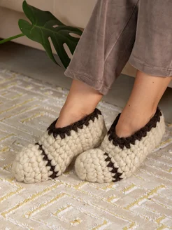 Вязаные чуни из овечьей шерсти теплые домашние угги