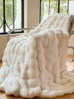 Белый (кремовый) пушистый плед из искусственного меха