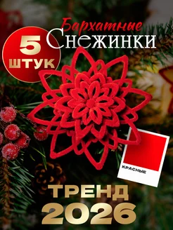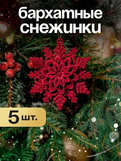 Елочное украшение "Бархатная снежинка" красная 5 штук
