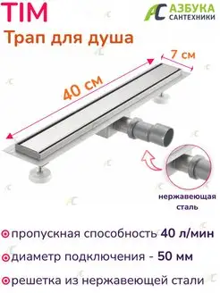 Трап душевой лоток под плитку для душа 40 х 7 см