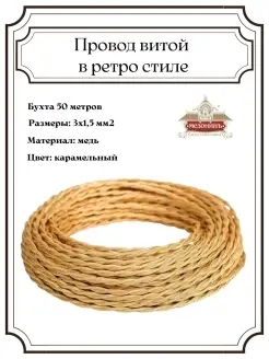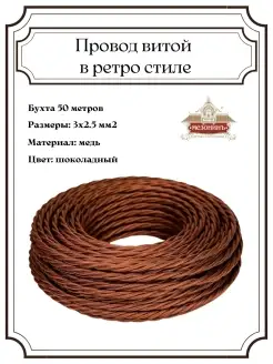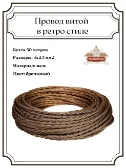 Ретро витой провод (кабель), 3х2.5 мм2, длина 50 метров