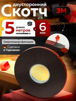 Скотч двухсторонний 6мм*5м "3М" Серый