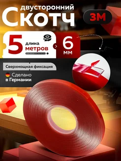 Скотч двухсторонний 6мм*5м "3М" Прозрачный