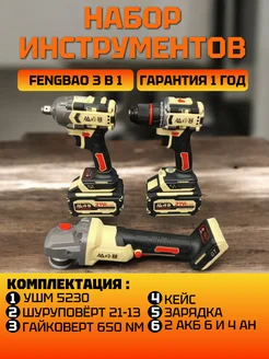 FENG BAO 3 в 1 ушм 125 гайковерт 650nm шуруповерт 60nm 2 акб