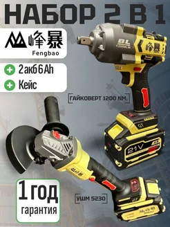 FENG BAO набор 2 в 1 гайковерт 1200 nm. Ушм 125мм. 2 акб 6ah