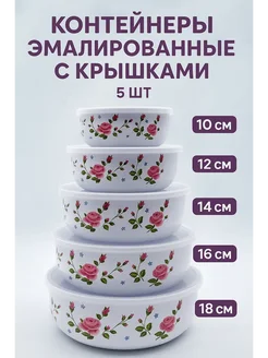 Эмалированные контейнеры с крышками набор 5 шт