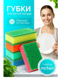 Губки для мытья посуды кухонные двухслойные набор 5 шт