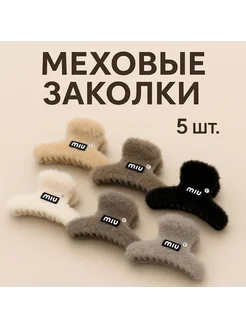 Меховые заколки для волос набор 5 штук