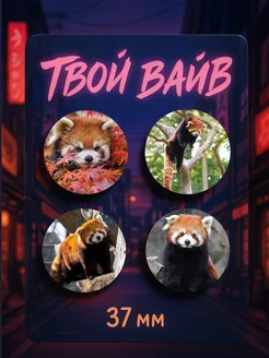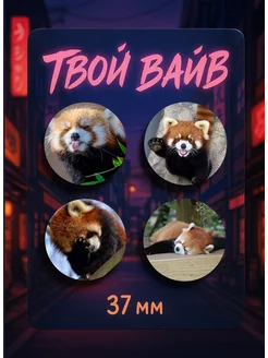 Значки на рюкзак Красная панда 37мм
