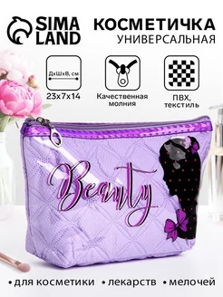 Сиреневая женская косметичка с рисунком Beauty