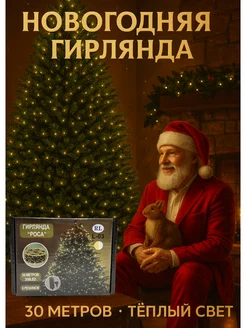 Паутинка гирлянда с росинками для хвойной лапы тёплый свет