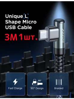 Плетеный кабель Micro USB угловым разъемом, 3 м, 1 шт