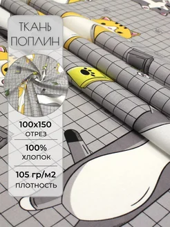 Детская ткань поплин для шитья отрез 100х150 см Кот Батон