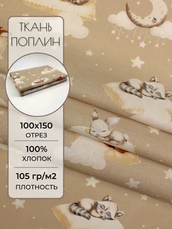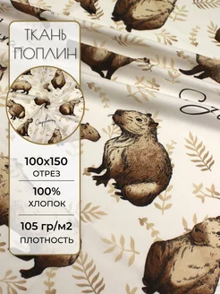Ткань Поплин для шитья рукоделия отрез 100х150 см Капибара