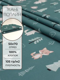 Детская ткань поплин для шитья рукоделия отрез 50х70 см Лес