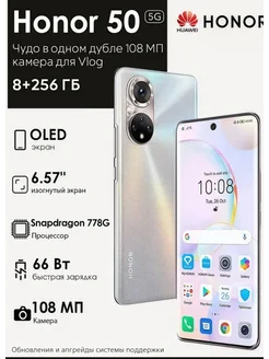 Смартфон HONOR 50 8 256 ГБ Dual nano SIM, полночный черный