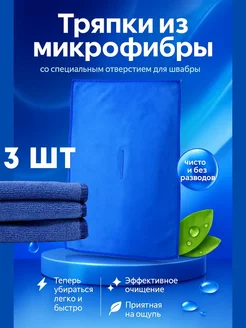 Тряпка для пола из микрофибры, тряпка на швабру синие 3 шт
