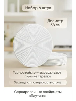 Подставки под тарелки круглые плейсматы белые 6 шт