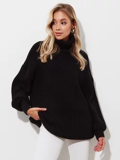 Свитер оверсайз oversize вязаный с горлом удлиненный