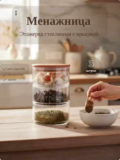 Набор банки в стеклянном виде 3 в 1 с устойчивым подставкой