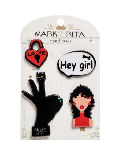 Набор брошей с цанговым зажимом бабочка "Роза и череп"