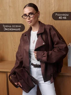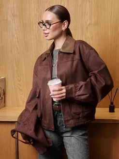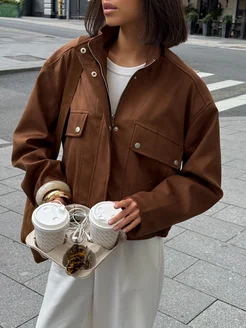 Куртка бомбер замшевая оверсайз короткая с карманами