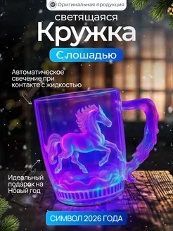 Кружка светящаяся Лошадь стакан с подсветкой для напитков