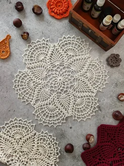 Салфетка на стол ажурная рельефная вязаная 36 см