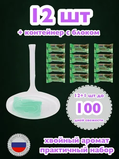 Туалетный блок для унитаза хвойный 12 шт с контейнером
