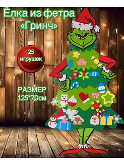 Ёлка "Гринч" новогодняя на стену из фетра с игрушками