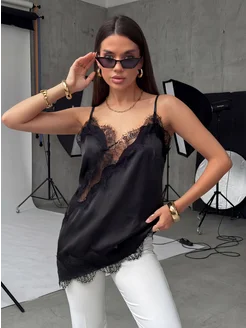 Шелковый топ с кружевном в бельевом стиле