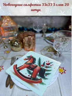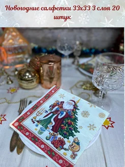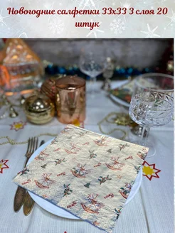Салфетки бумажные новогодние праздничные 3слоя 20штук 33х33