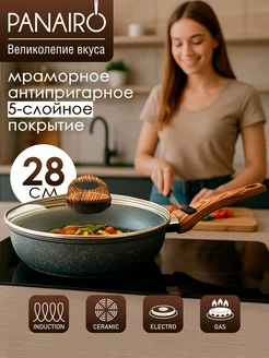 Сковорода для индукционной плиты с крышкой 28 см