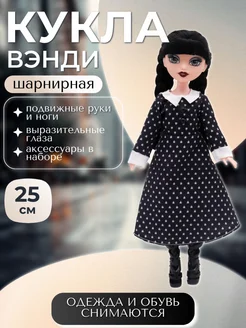 Кукла в платье Уэнсдей Аддамс шарнирная 25 см
