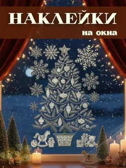 Новогодние наклейки на окно «Елка со снежинками»
