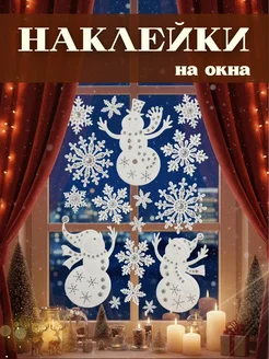 Наклейка на окно - Снеговики и снежинки