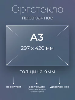 1 шт. Оргстекло прозрачное А3, (297х420 мм.), 4 мм