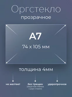 4 шт. Оргстекло прозрачное А7, (74х105 мм.), 4 мм