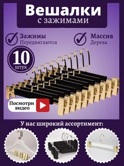 Вешалки-плечики деревянные с зажимом, набор 10 штук