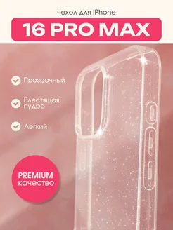 Чехол для Iphone 16 Pro Max прозрачный с блестками