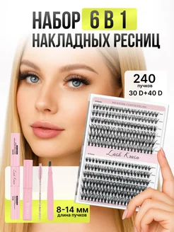 Набор пучковых накладных ресниц с клеем и ремувером изгиб D