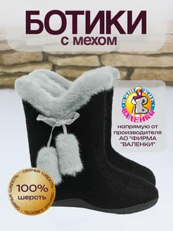 Валенки чёрные с голубым мехом и колокол, на подошве