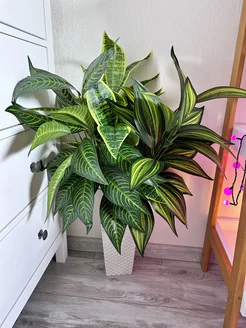 Дерево напольное Пальма в горшке Монстера бело-зеленая