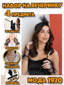 Набор в стиле гетсби 4 предм повязка ожерелье перчатки мунд