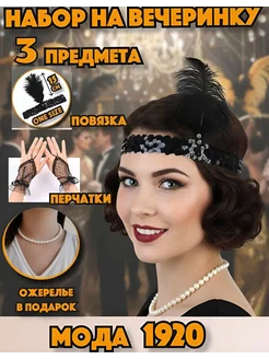 Набор в стиле гетсби из 3х предм повязка ожерелье перчатки