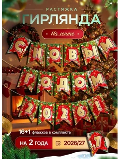 Растяжка с Новым годом 2026 украшения новогодняя для дома