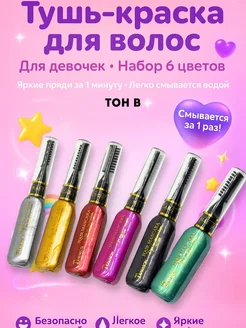 Смывающаяся цветная тушь для волос для девочек — набор 6 шт