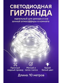 Гирлянда роса в машину для интерьера уличный 10м LED белая