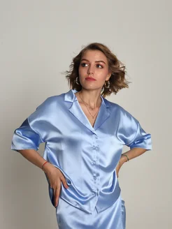 Блуза из атласа с коротким рукавом