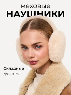 Меховые наушники бежевые зимние